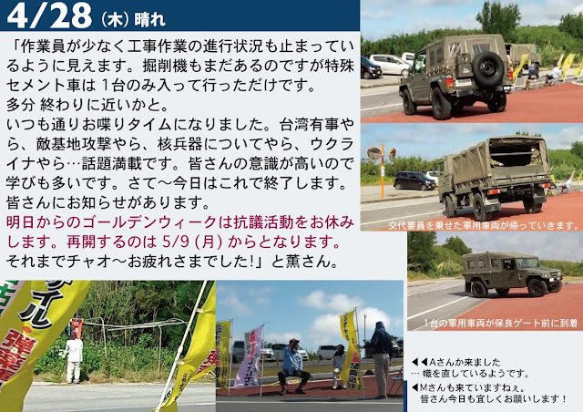 埼玉県在住のFujikoさん(うたうたい・島じまスタンディング)は保良ゲート前行動のSNSグループに参加して、ほぼ毎日、「保良だより(遠隔リポート)」を、保良の方々の許可を得てfacebookで発表しています。 ▶Fujikoさんfacebook